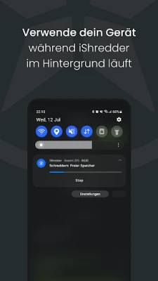 iShredder™ ist Ihr zuverlässiger Daten-Schredder für Android. Die App löscht Daten sicher, indem sie Fotos, Dateien und freien Speicherplatz unwiederbringlich überschreibt. Schützen Sie Ihre Privatsphäre und verhindern Sie die Wiederherstellung persönlicher Informationen, bevor Sie Ihr Smartphone weitergeben.