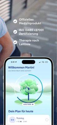 Entdecken Sie eine vielseitige Unterstützung durch ein multimodales System: Ein personalisierter Trainingsplan mit über 130 gezielten Übungen sorgt für eine fundierte Stärkung Ihrer Muskulatur. Vertiefen Sie Ihr Verständnis mit kompakten Lerneinheiten, die in Videoform die medizinischen Hintergründe beleuchten, häufige Fragen beantworten und wertvolle Alltagstipps liefern. Eine innovative KI-gestützte Beinachsenkontrolle, die per Kamera-Tracking in Echtzeit Feedback gibt, sichert die korrekte Ausführung Ihrer Bewegungen für eine optimale Gelenkstabilisierung. Darüber hinaus fördert ein angeleiteter Lymph-Flow die Reduzierung von Schwellungen, während ein motivierendes Punktesystem, bei dem ein digitaler Baum mit Ihrem Fortschritt wächst, Sie kontinuierlich zum Weitermachen anspornt.