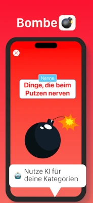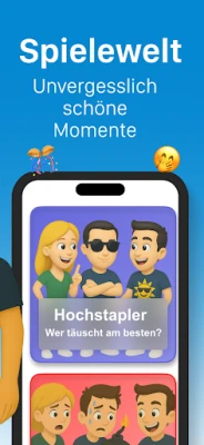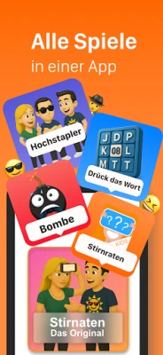 Doch der Spaß endet nicht bei **Stirnraten**! Tauchen Sie ein in ein ganzes Universum kreativer Minispiele, die nur darauf warten, entdeckt zu werden. Im Spiel **Hochstapler** gilt es, geschickt zu bluffen und zu entlarven, wer den geheimen Begriff nicht kennt. Bei **Bombe** tickt die Zeit unerbittlich, während Sie passende Begriffe zu einer Kategorie nennen und das Gerät weitergeben, bevor es in Ihrer Hand "explodiert". Oder stellen Sie Ihre sprachliche Gewandtheit bei **Wortverbot** unter Beweis, indem Sie Begriffe erklären, ohne dabei tabuisierte Worte zu verwenden. Jedes dieser einzigartigen Spiele ist sofort spielbar und vollständig werbefrei. Bei **Stirnraten** setzen wir auf Transparenz und Wert: Erhalten Sie lebenslangen Zugang zu allen Inhalten und Funktionen durch eine einmalige Zahlung – ganz ohne Abonnement. Verabschieden Sie sich endgültig von der Langeweile und entdecken Sie eine App, die in jeder Situation für Heiterkeit sorgt.
