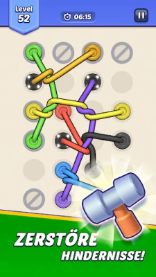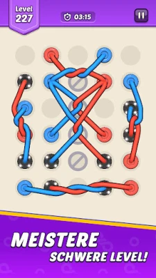 Ihre Reise beginnt mit zugänglichen Aufgaben, die Sie sanft an das Spielprinzip heranführen und Ihnen helfen, ein Gefühl für die Mechaniken zu entwickeln. Doch schon bald steigern sich die Komplexität und die Anzahl der Seile, die Ihre Problemlösefähigkeiten auf die Probe stellen und Ihnen immer anspruchsvollere Kopfzerbrechen bereiten. Visuell verwöhnt Tangled Rope mit atemberaubend gestalteten Szenarien: Farbenfrohe Seilgeflechte vor beruhigenden Hintergründen schaffen eine immersive Atmosphäre, die zum Verweilen einlädt. Die intuitive Drag-and-Drop-Steuerung sorgt für ein reibungsloses Spielerlebnis, sodass Sie sich voll und ganz auf das Lösen konzentrieren können. Und sollte ein Knoten einmal hartnäckiger sein, stehen hilfreiche Tipps bereit, oder Sie können die Lösung entdecken, um neue Ansätze zu lernen und sich weiterzuentwickeln.