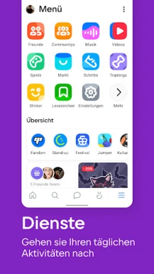 VK ist weit mehr als nur ein Kommunikationswerkzeug; es ist eine pulsierende digitale Welt, die Ihr tägliches Leben bereichert. Tauchen Sie ein in eines der größten sozialen Netzwerke global, knüpfen Sie neue Kontakte und finden Sie Gemeinschaften, die Ihre Interessen teilen. Entdecken Sie ein Universum voller Unterhaltung: Hören Sie Ihre Lieblingsmusik, erstellen Sie personalisierte Playlists und lassen Sie sich von intelligenten Empfehlungen inspirieren, neue Klänge zu entdecken. Erstellen und genießen Sie fesselnde kurze vertikale Videos – sogenannte Clips – die eine Vielfalt an Themen abdecken.